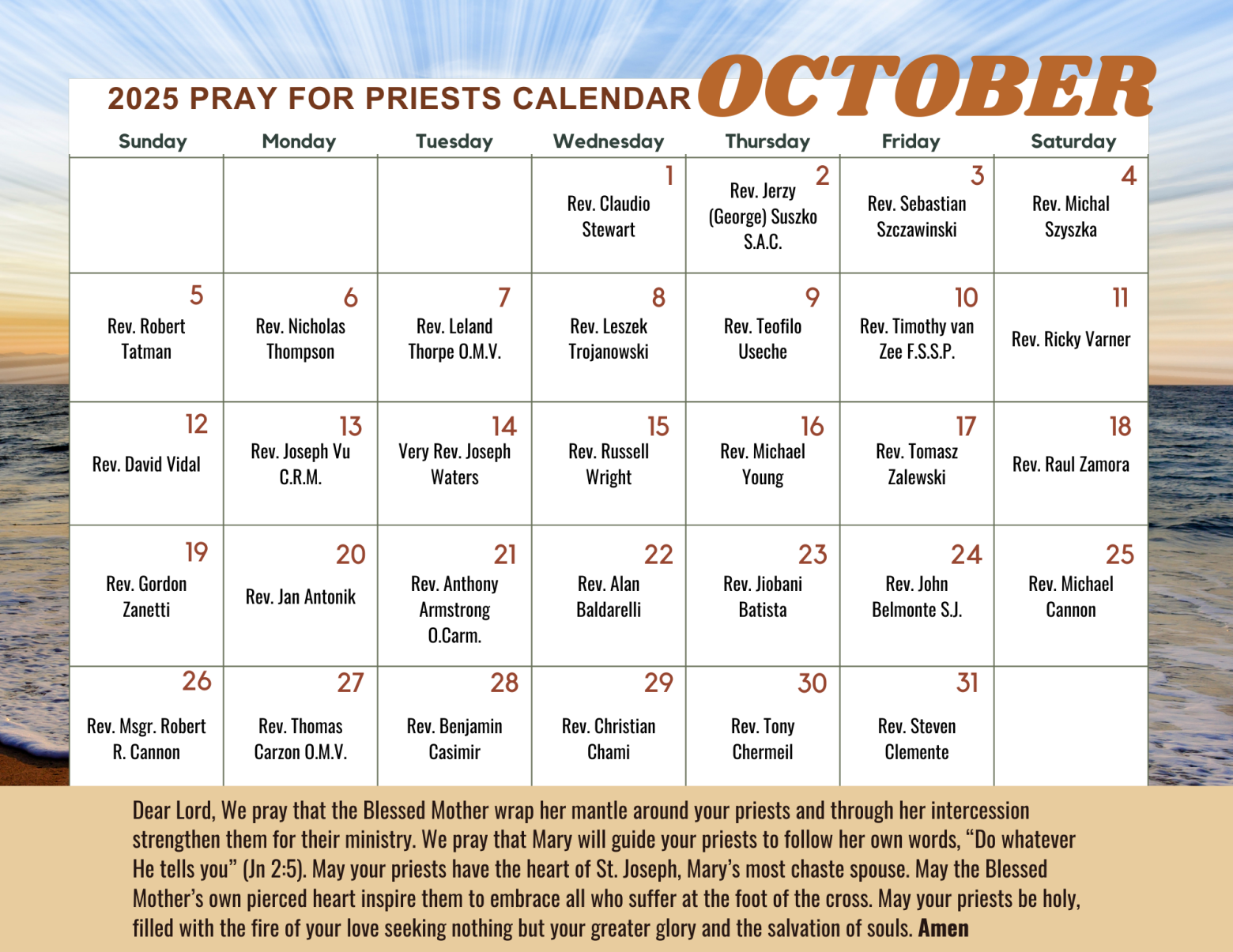 WARNING! Text/Email Scam Alert - Please beware! Parishioners have received text/email messages from people pretending to be clergy – including Bishop Frank J. Dewane – or Parish/school staff, requesting donations in the form of gift cards and/or wire transfers. These messages often come from text/emails that look similar to official Diocesan/Parish/school numbers or accounts and often greet the recipient by name and have the priest’s, Bishop’s, or staff member’s name in the “From” line and/or closing signature of the message. The scam often claims that the priest/Bishop/staff member is in need of gift cards or money to aid a sick child, relative, or parishioner. The message then asks the person to purchase gift cards/money orders and then to text/email the redemption code and PIN number. It is Diocesan policy that neither the Bishop, nor priests or staff request donations in the form of gift cards, PayPal, MoneyGram, etc.! Without this awareness, some have responded to the fake messages, with consequences, including loss of funds. There is an established process in place on how parishioners can make donations and participate in the life of the Diocese, Parish, or school. If you receive such a scam text or email, please immediately contact the Diocese, Parish, or school directly! Do NOT send money, gift cards, or codes!
