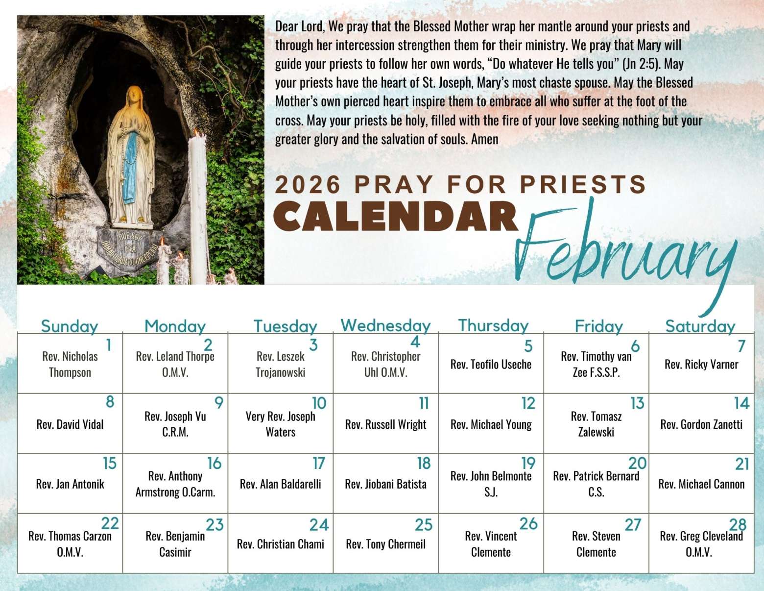 Lenten Parish Mission - Father Cedric Pisegna, C.P., an inspirational and motivational speaker and author of 26 books, will be hosting a Lenten Mission Sunday, March 1 through Wednesday, March 4 at Our Lady of Lourdes Parish, 1301 Center Rd, Venice beginning at 5:30pm. Call 941-497-2931 for more information.